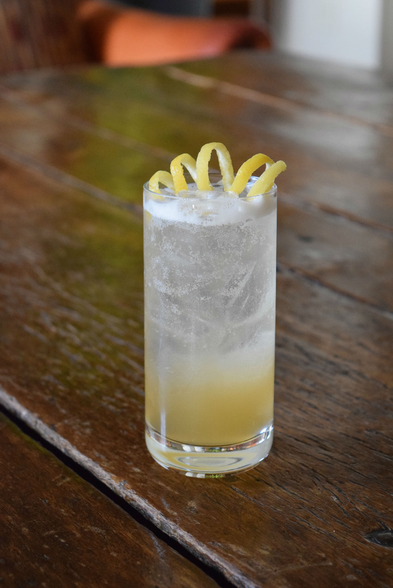 - Combine all ingredients in a cocktail shaker, shake until combined. Pour into a Collins glass and finish with a lemon twist.