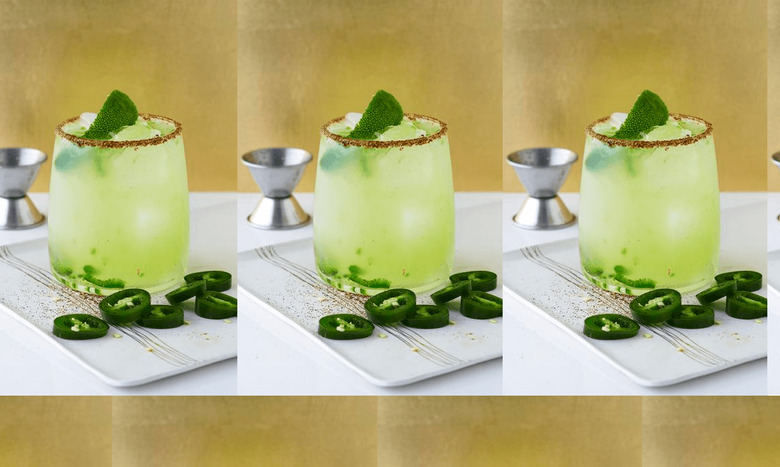 - Muddle the jalapeño slices in the bottom of a cocktail shaker. Pour Skinnygirl® Margarita over the jalapeños. Add ice and shake well. Rim a rocks glass with the chili powder mixture and pour in the margarita. Garnish with a lime peel.