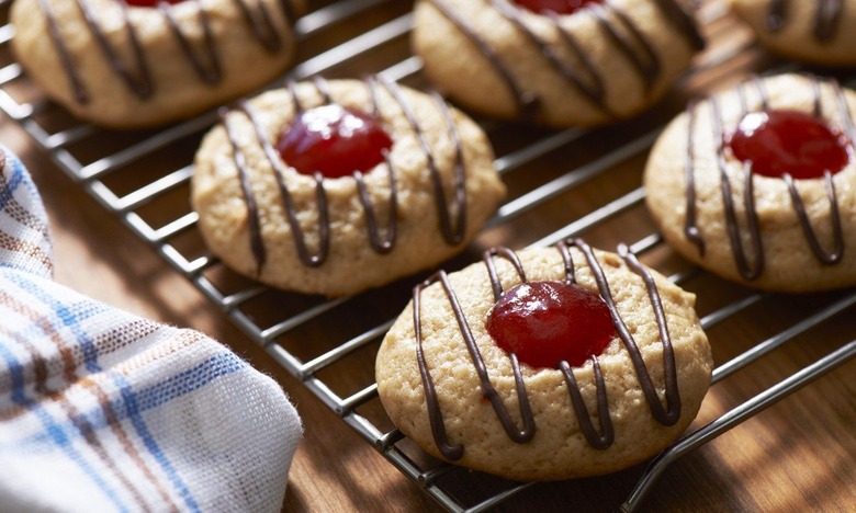 - Drizzle cooled cookies with melted chocolate, then fill indentations with jam. Let stand until chocolate sets.