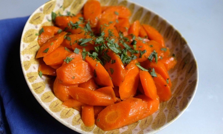 - Stir in the mustard and butter. Stir until well coated and carrots are tender. Garnish with herbs before serving.