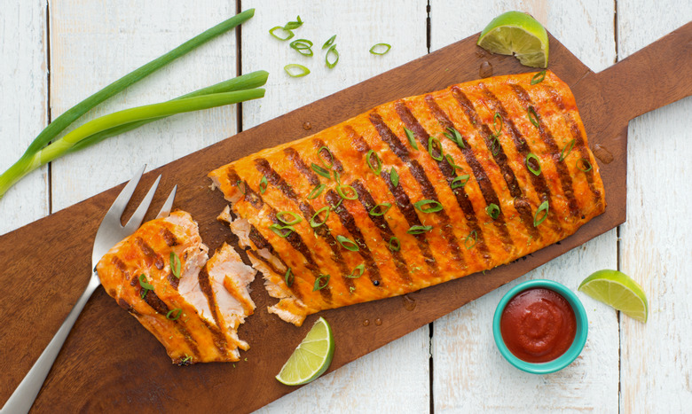 - Grill, covered and without turning, for 15 to 18 minutes or until grill-marked and fish flakes easily when tested with a fork. Sprinkle with green onions before serving.