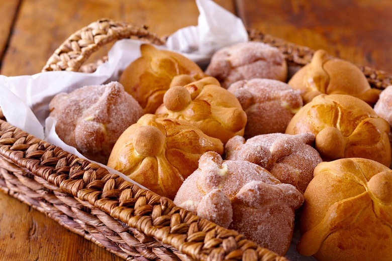 Pan De Muerto is a traditional Mexican sweet bread roll baked during the weeks leading up to Día de los Muertos, which is celebrated between October 31 and November 2. It is decorated with pieces representing skull and bones, and is placed on the altar as an offering to honor deceased souls during Day of the Dead celebrations.Recipe courtesy of Cacique