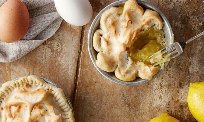 - Pour the hot filling evenly into six 4-inch mini baked piecrusts. Quickly spread the meringue evenly over the filling, starting at the edge and sealing to the crust all around; swirl with the back of spoon. Bake in the upper third of the oven until lightly browned, 16 to 18 minutes. Cool on a wire rack for 30 minutes to 1 hour.