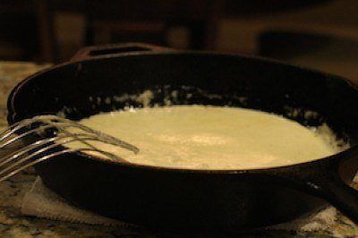 - 1. Cut up cauliflower into florets and place in a saucepan with about 4 cups of water. Bring to a boil then cover and lower to a medium temperature for about 20 minutes. Drain. Add to your blender along with garlic and puree.2. In a cast iron pan (or your favorite sauté pan) over medium heat add in butter to melt. Then add in cauliflower and garlic and stir with a whisk. Bring to a simmer then add in chicken broth and cream. Continue whisking then season with salt and pepper. Taste for any additional seasoinings.3. Once the sauce becomes nice and creamy add in your zucchini noodles, peas, chicken or any other ingredients. Shrimp and broccoli would be great! Top with Romano cheese and enjoy!