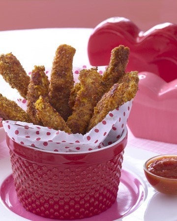 Why didn't anyone tell me that breadcrumbs can stick to meat just fine without the time-consuming flour/egg/breadcrumb three-step process? News flash! Raw skinless chicken is very sticky and holds this whole-grain breading quite well! No need for frying here; I used my “faux fry” method of high-heat baking, using a generous coating of good-quality cooking spray oil to give these fries a nice crisp finish. A good pair of kitchen scissors is your best friend here for cutting the chicken into fry-shaped sticks.Click here to see 10 Back-to-School Recipes to Make Your Kids Happy
