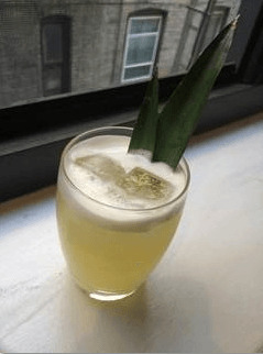 - Muddle pineapple, and add rest of ingredients, shake everything, and strain into a rocks glass with ice. Top with a splash of soda and garnish with two pineapple leaves.