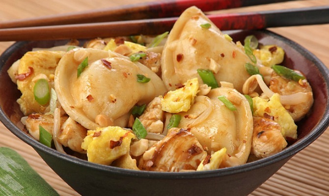 Pad Thai is often made with rice noodles, but make an even easier version of the take-out classic with store-bought pierogies. Recipe courtesy of chef Dale Talde for Mrs. T's Pierogies.