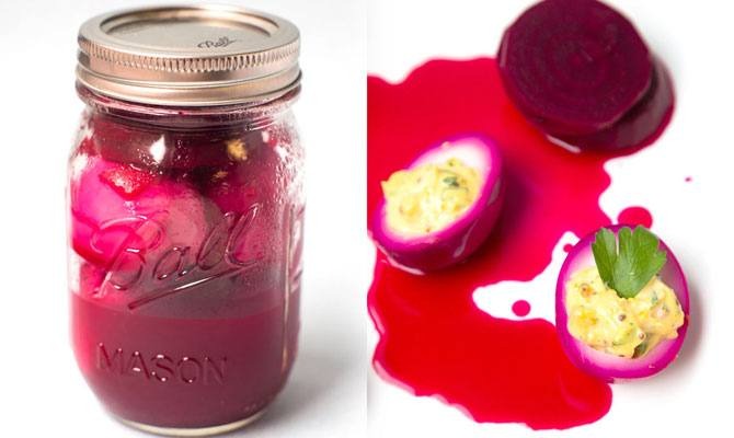 - In medium-sized saucepan, add the water, vinegar, beet, onion, sugar, bay leaf, and salt. Cover the saucepan and let the mixture cook for 20 minutes, until the beet is tender. Cool completely, uncovered. Put the mix in a container or a jar with the eggs. Marinate in the refrigerator for at least 2 hours.