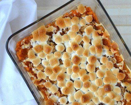 - In a food processor, pulse the pie shells and pecans 2-3 times until it is in medium to small chunks. Mix together with the marshmallows and top the sweet potato filling with it. Bake in the oven for 25-30 minutes until hot and the marshmallows are golden brown.