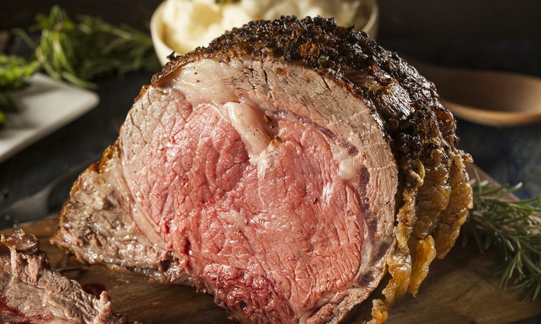 - Cut the bones away from the roast, but be careful not to cut them all the way off! Rub the spice mix all over the meat and then using butchers string tie the bones back on for roasting. Place your roast into a pan or on a sheet pan with a rack. Roast for 20-25 minutes. Then turn the oven down to 32 degrees F and roast for about 45 minutes to 1 hour more, or until a thermometer reads 120 degrees F.