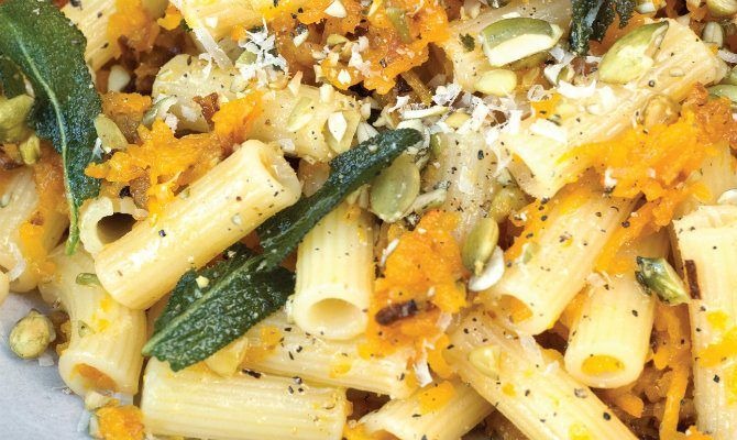 This maccheroncini recipe from Nancy Harmon Jenkins’ and Sara Jenkins’ cookbook, The Four Seasons of Pasta, is made with fresh pumpkin, herbaceous sage, and garlic for a delicious fall pasta dish.Reprinted by arrangement with Avery Books, a member of Penguin Group (USA) LLC, A Penguin Random House Company. Copyright © Nancy Harmon Jenkins and Sara Jenkins, 2015.
