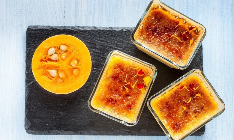 This pumpkin crème brûlée tempts you with a rich pumpkin flavor and a velvety smooth consistency that makes it impossible to put down your spoon.
