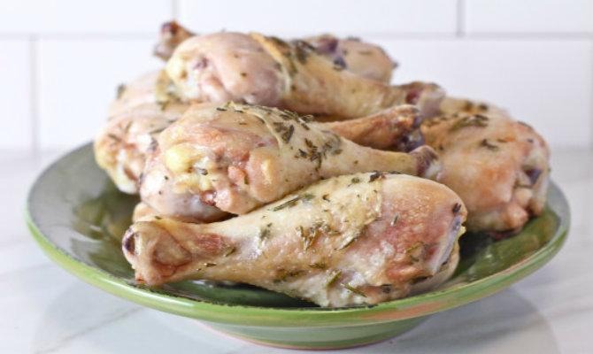 - Move oven rack to upper-most level and pre-heat oven to 425 degrees F. In a small bowl, mix coconut oil and herbs until well distributed. Remove excess moisture from the drumsticks, one at a time, by wrapping with a paper towel and gently squeezing. Use your fingers to create space between the meat and the skin.