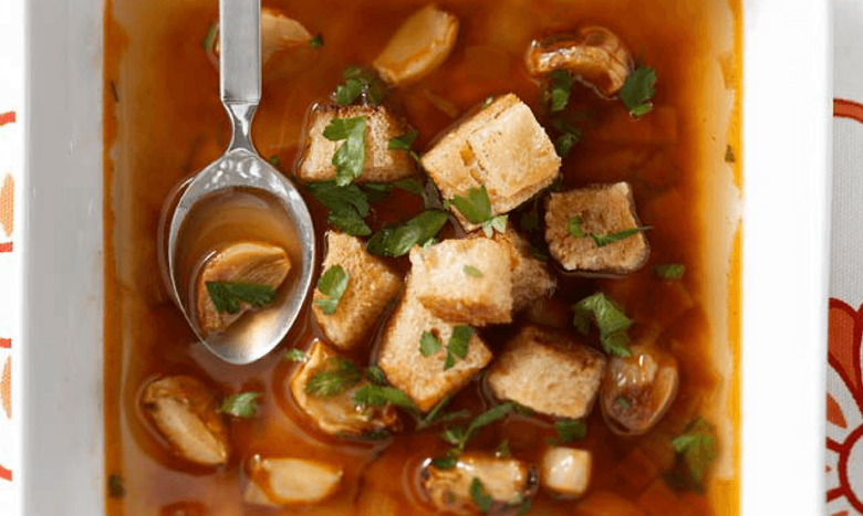 - Make the soup: Melt the butter in a large pot over medium-high heat. Add the onions and cook until they are soft and translucent, about 5 to 6 minutes. Stir in the paprika, cumin, and roasted garlic. Add the stock and bring it to a boil. Reduce the heat and simmer for 15 minutes. Serve with croutons and chopped parsley.