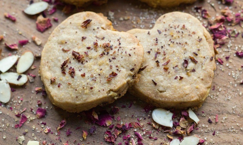 - Sprinkle cookies individually with additional rose petals and Turbinado sugar.