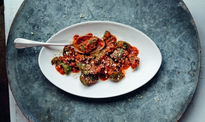 These tender dumplings typify Italian simplicity: Quality ingredients and just a few steps make for a delicious dish. Each ingredient shines through with clarity. The spinach lends earthiness, while the eggs create richness. A simple coating of melted butter brings a soft sweetness to the dish. In this method, the dough is gently dropped into simmering water by the spoonful and poached. — Jenn Louis, author of Pasta By Hand: A Collection of Italy’s Regional Hand-Shaped Pasta.
