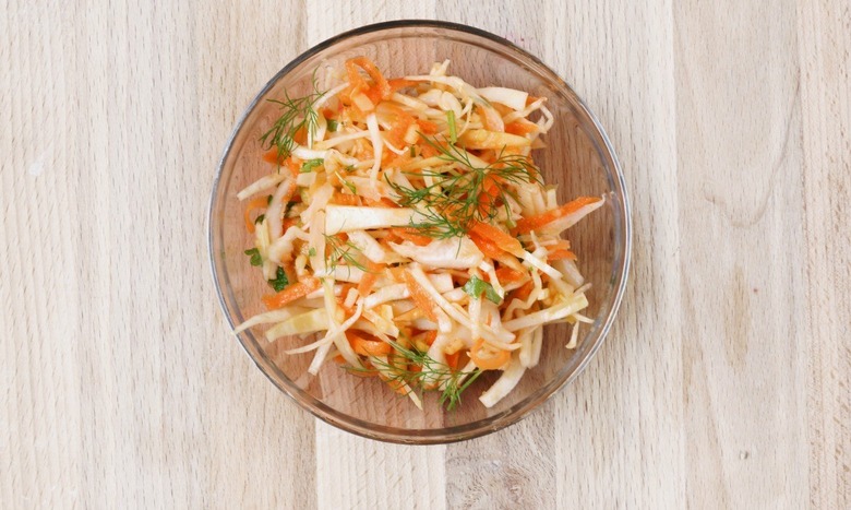 - Toss the shredded carrots with dressing and add parsley right before serving.