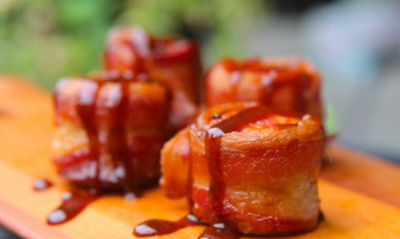 You can modify this grill recipe for the oven, if you don’t have access to one on game day. Simply wrap your bite-size slices of kielbasa in bacon, and season like the recipe says, and then bake on a parchment-lined sheet pan in a 375 degrees F oven on the center rack for about 20 minutes or until crisp.ecipe Courtesy of Clint Cantwell, Grillocracy.com