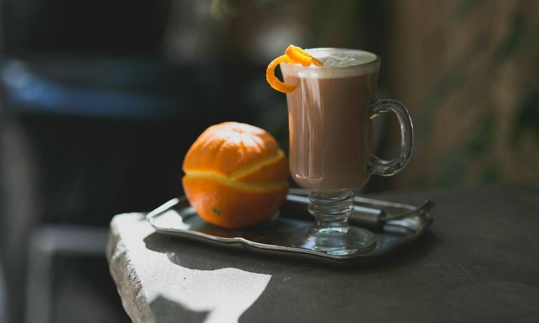- Combine heavy cream, simple syrup, and orange zests in a chilled cocktail shaker.