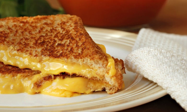 - Take the grilled cheeses off the stove, cut in half, and serve.