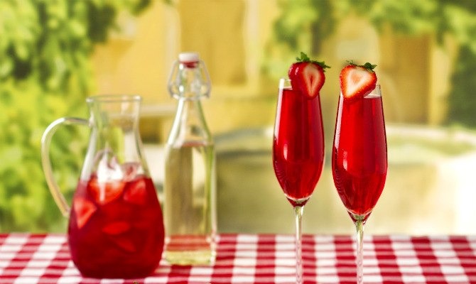 The Strawberry Mimosa uses the Strawberry Colada variety from David’s Tea and sparkling wine for a fruity summer brunch drink.