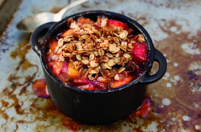 - Fill ramekins with the fruit mixture, then sprinkle the oats on top. Bake for 20 to 25 minutes or until the top is golden brown and the fruit is bubbling. Remove the ramekins from the oven and cool for a minimum of 15 minutes.