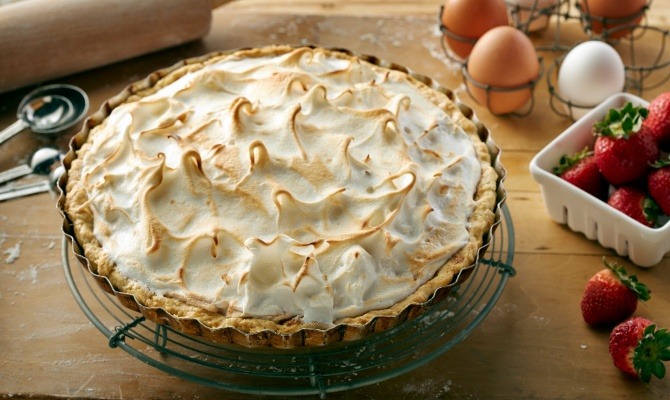- Quickly spread the meringue evenly over the filling, starting at the edge and sealing to the crust all around; swirl with back of spoon. Bake in upper third of the oven until lightly browned, 15 to 17 minutes. Cool on a wire rack for 1 hour, then refrigerate for 3 to 4 hours before serving.