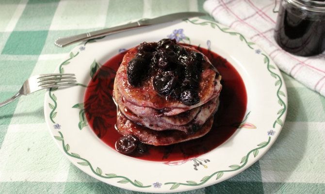 Sweet Cherry Syrup And Cherry Pancakes