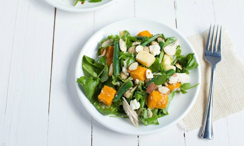 Unsure of what to do with your leftover turkey? Put it to good use by pairing it with chopped apples, chickpeas, and butternut squash on mixed greens.