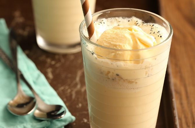 - Right before serving, remove the vanilla bean pod from the vanilla syrup, then stir in seltzer and alcohol, if using. Scoop ice cream into serving glasses and pour soda over top. Serve immediately.