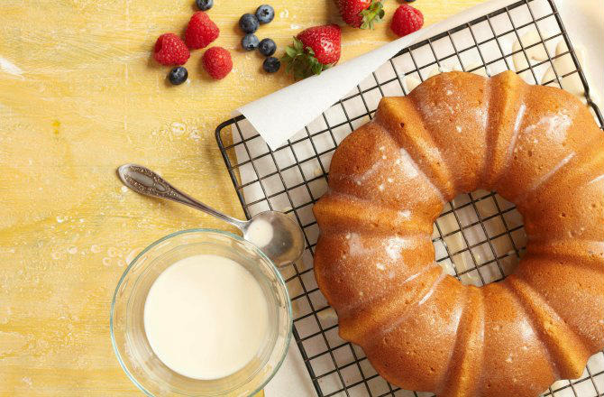 - Allow the eggs, milk, and butter to stand at room temperature for 30 minutes. Preheat the oven to 325 degrees F. Coat a 10-inch fluted tube pan with cooking spray for baking; set aside. In a medium bowl stir together the flours, baking powder, and salt; set aside.