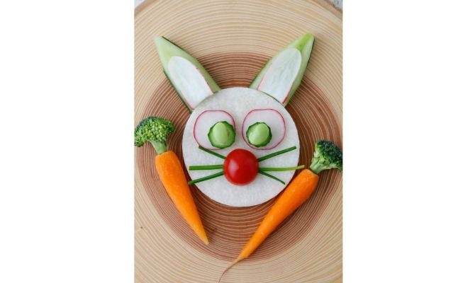 Kids will have fun making these bunnies and even more fun eating their vegetables, like jicama, tomatoes, cucumbers, and edamame. Even the pickiest of eaters will enjoy them! Recipe courtesy of Catherine McCord of Weelicious on behalf of Bolthouse Farms.