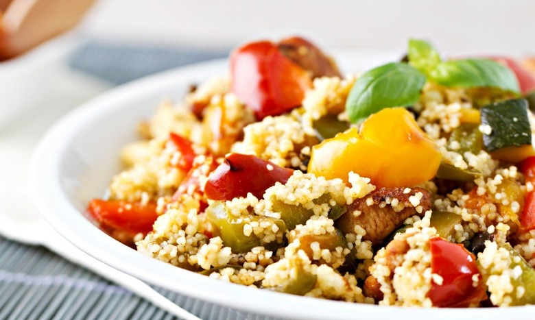 - Add the carrots, red pepper, and couscous. Stir to mix everything well.