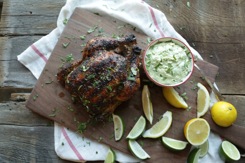- To Plate: Once the chicken is done cooking, remove it from the grill and let it rest for 4 to 5 minutes before serving. Baste one last time if there is still some butter left and serve it along side the avocado yogurt sauce.