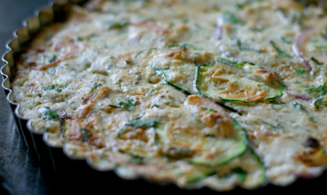 - Stir in the zucchini. Pour the mixture into the chilled pastry crust and sprinkle with the remaining Parmigiano-Reggiano.