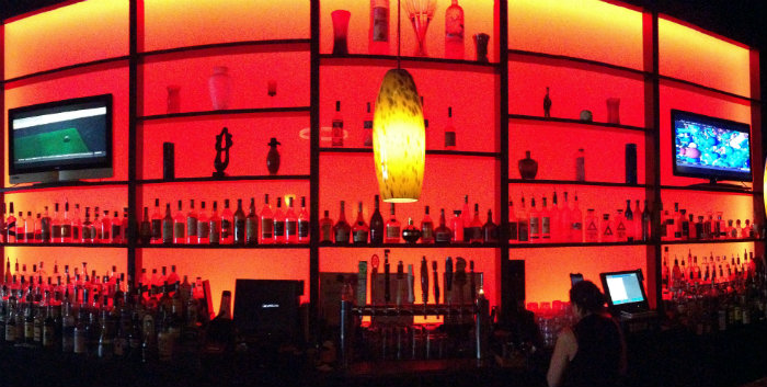 The entrance is unassuming but leads you down to the lower level and the newly restored Rewind bar. Colorful LED lighting gives the space a soothing glow, backlighting the wide variety of available spirits.
