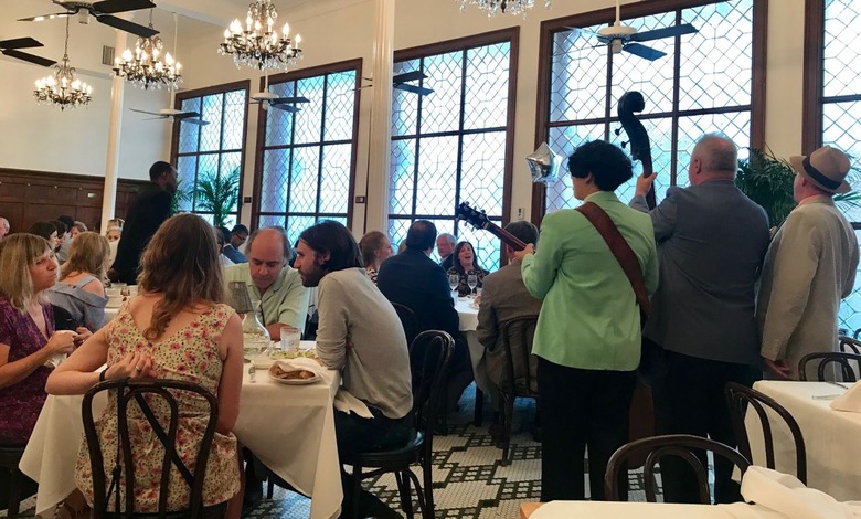In a city steeped with excellent Sunday brunches, one New Orleans restaurant is more synonymous with the meal than any other: Arnaud's. Currently celebrating its hundredth year in business, the venerable establishment has a reputation for being the rare upscale, fine-dining restaurant that's also a whole lot of fun, and that's never more apparent than in the late morning and early afternoon hours of Sunday, when the sun shines in from Bienville Street, well-dressed crowds fill the tables to celebrate birthdays or nothing at all, and a roaming jazz band serenades the room. We recently had the opportunity to take in this famed brunch, and it certainly lived up to all expectations.