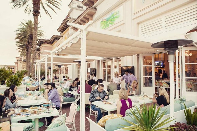 The bright décor with its floral patterns, airy open spaces and white washed and turquoise accents, made us think of a South Beach venue, but with a desert background. Plenty of patio seating and large retractable doors to enhance the al fresco dining experience with flair and finesse.