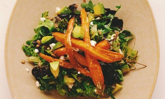 Desserts are equally interesting and delicious and include a salty chocolate peanut butter bar, orange olive oil cake, coconut panna cotta, and a bourbon ice cream sundae.