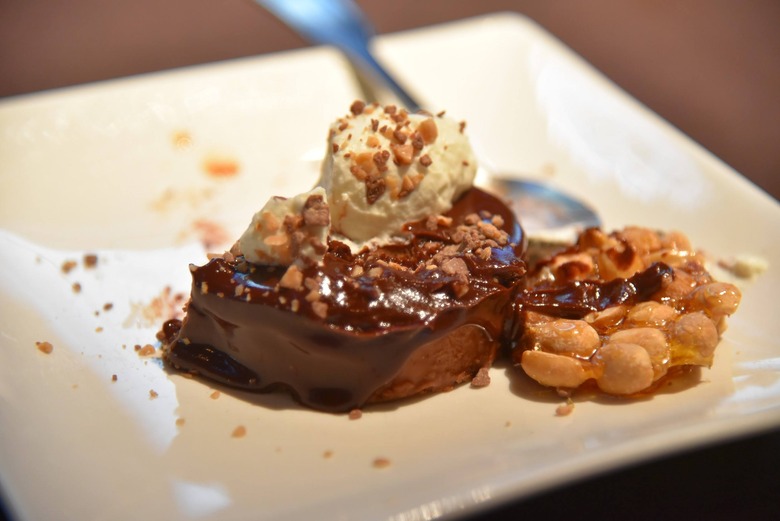 In the event that you have room for dessert, try the Chocolate Crunch. It is basically a solid hazelnut flavored chocolate topped with chocolate ganache and Heath crumble. Don't complain that it looks too small, it is denser than depleted uranium, but much more tasty.