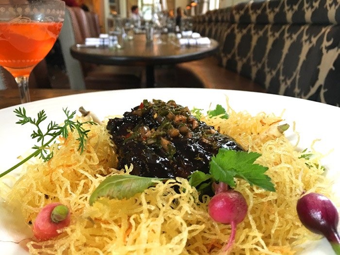 The four chefs involved in the seasonal menu creation have brought their skills, experience, and traditional regional recipes to the mix, which is reflected in some popular favorites. This includes unexpected offerings like boiled peanuts with truffle jus and chicken liver mousse with a tangy gelée glaze and pickled mustard seeds. When have you ever seen these in a hotel restaurant?