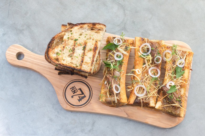 Here are examples of the type of upscale, French-inspired, and indulgent dishes you'll be served while dining at RN74: Burgundian escargot croissant with green chartreuse butter; smoked bone marrow with vadouvan butter, oxtail marmade, and lemon confit; lobster tortellini with black truffle butter, corn sabayon, and chocolate mille-feuille soaked in espresso caramel, candied hazelnut, and Chantilly.