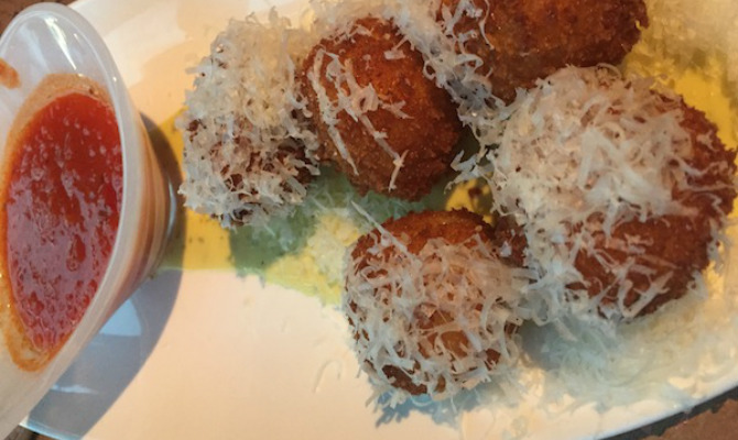The breadbasket contains homemade focaccia, lemon thyme flatbread and parmesan breadsticks. Antipasti standouts include artichoke, crab, and sausage arancini; bacon wrapped dates with spicy Italian sausage; pea pesto and crab salad crostini; and a wide variety of cheeses and salami. There are four pizzas to choose from: a mortadella Bianca; spinach and buffalo ricotta; Margherita; and mozzarella, salami, and oregano.