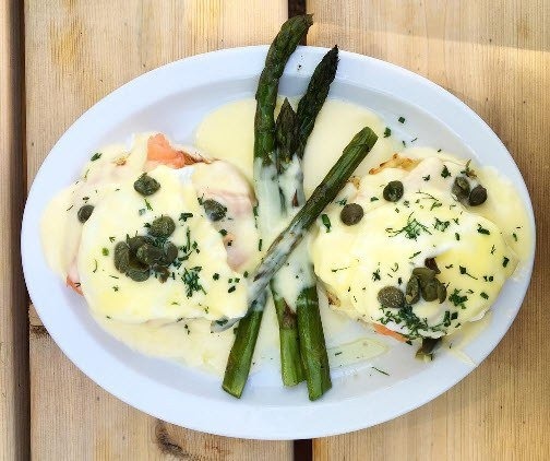 We were seated immediately on the porch and began to make the biggest decision of the day ― what to order? One of the best things about Hi-Lo Diner is that its breakfast menu is served all day. We had to try one of the signatures. After a few minutes of debate, I had two options to pick from: the Gary Coop'er and the Lox & Dam Benedict.