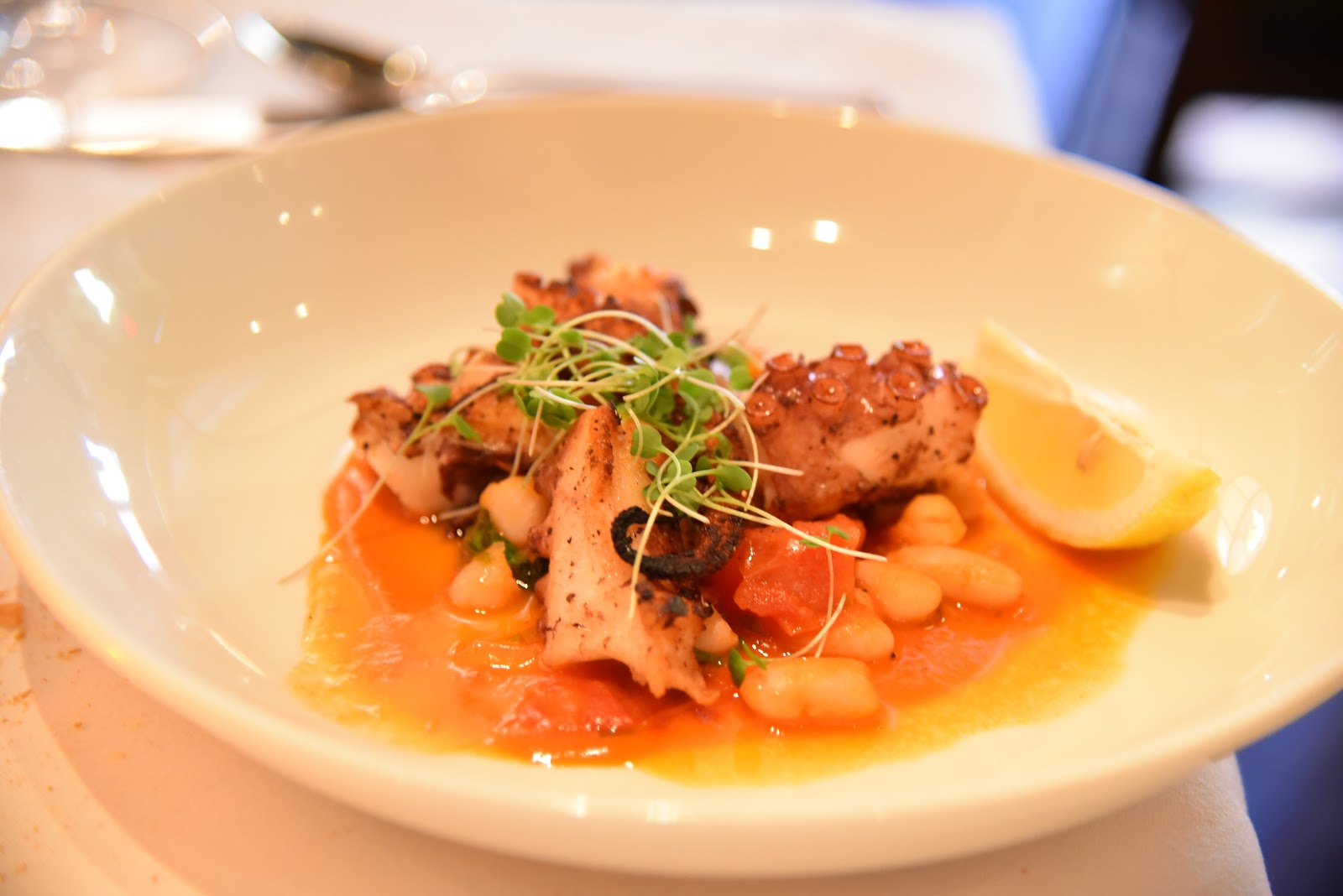 A glass of Contadi Castaldi Franciacorta, a sparkling rosé from Lombardy, starts dinner off on the right note, although the impressive wine list is first and foremost pays homage to the good wines of the region. An antipasti of grilled octopus with fresh vegetables marinati in a spicy vinaigrette ($15) can be read as a take on octopus leg (for it is one) taking on al dente attributes, just like pasta. The plump legs lap up the vinaigrette of the marinated vegetables (eggplant, red peppers, and tomatoes along with cannellini beans).