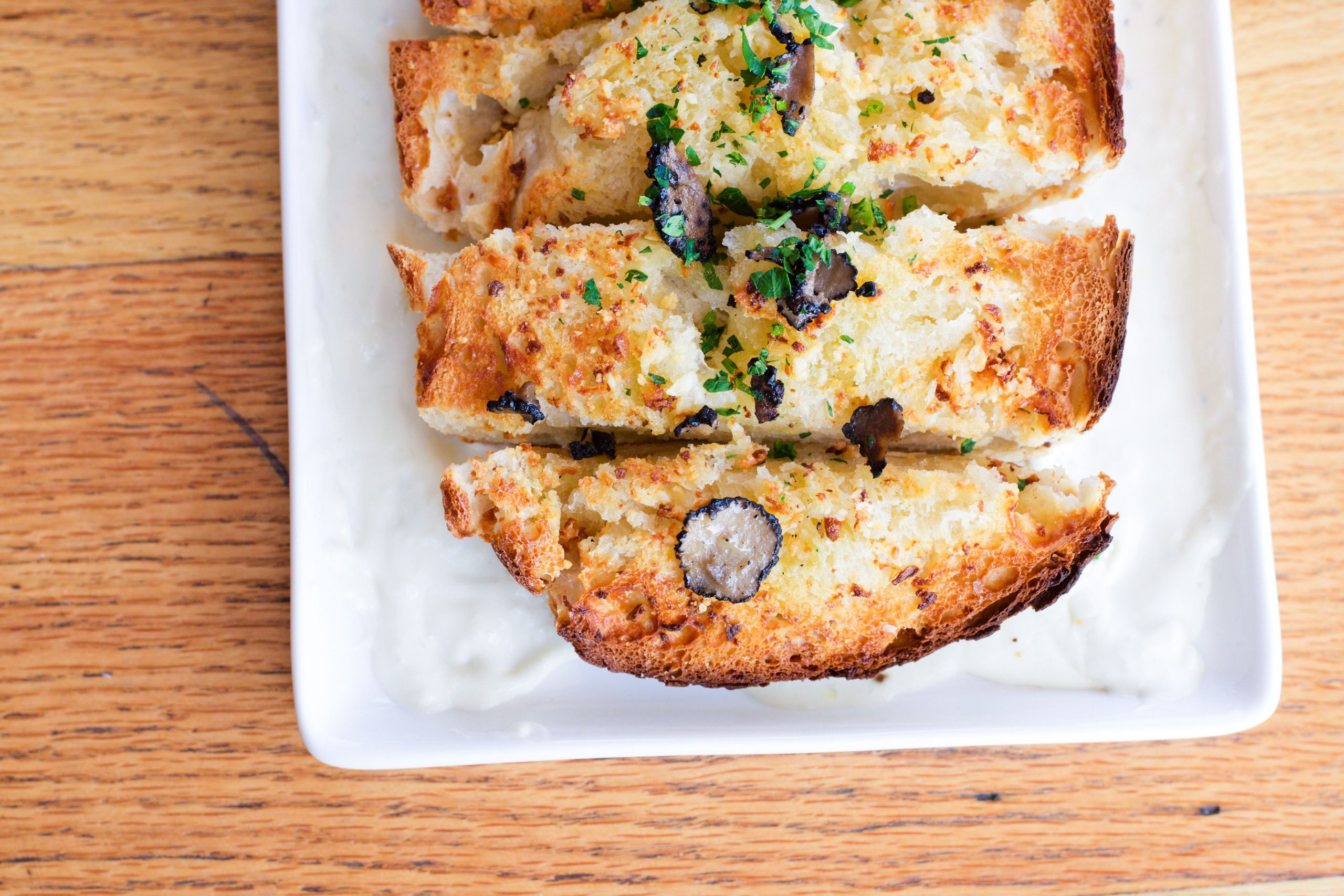 Not like this they don't. The bread was brought out on a long platter and had been toasted with mushrooms delicately placed on top. My eyes diverted immediately to the white béarnaise nestled underneath. The floating island garlic bread was cradled in an creamy asiago and gorgonzola sauce. This dish is best eaten with a knife and fork, but it's understandable if you can't resist grabbing the slabs of bread and dunking them into the creamy sauce. The dish was a playful new take on a stale classic, truly delectable.