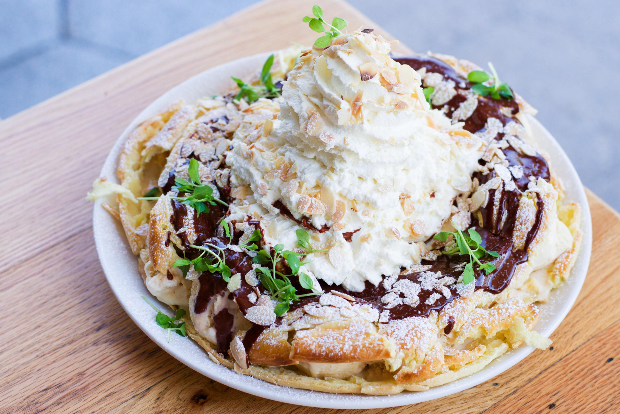 My final recommendation; the Industry Puff. The desserts served here are best described as classics with a twist. The Industry Puff is much what the name promises; a large puff pastry sliced horizontally. It's stuffed with burnt sugar ice cream, almonds, and berry compote. And finally topped with a mountain of fresh whipped cream and dark chocolate sauce poured tableside. Surprisingly this wasn't overwhelming. Many establishments seem to think desserts only improve with the more flavors you pile on top, this could not be more wrong. But all aspects of the Industry Puff was well incorporated, with no one ingredient competing with the others. However it was a dangerous thing to order, it's almost impossible to limit yourself even after a satisfying meal.