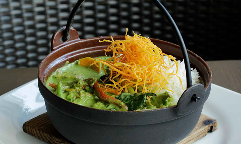 Our hunger pains had been sated, but we were not full, let alone stuffed, so it was on to the main courses. They are divided, menu-wise, into specialties and classics. From the specialties side we had iron pot green curry chicken, $14, a thick iron pot filled with that wonderful green curry that Thailand does so well and topped with apple eggplant (a Thai favorite), grated carrots and jasmine rice. This harnessed the warm hominess of curry with the bite of eggplant and soft chewy texture of rice. It was confidence inspiring. For me, the dish of the night, and worthy of a place on my list of Best New Dishes of 2015. From the classics, we chose drunken noodles, $13, because, well, if a noodle can't get drunk once in a while, what can it do? Malai makes their rendition from jasmine rice flat noodles, spicy chopped tenderloin, bell peppers and Thai basil. Much as the history of the dish recounts, this is good home cooking, Thai style.