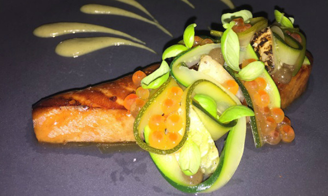 Diners can order a la carte dishes from the menu including soft shell crab with tomatillo and avocado, octopus with chickpeas and artichokes, chicken with preserved lemon and green olives, and duck with dates and squash blossoms. Also offered is a 10-course tasting menu which includes salmon with cucumber, sumac, and roe; hen egg with chermoula, cumin, and quinoa; beef with beans, marrow, and tomato jam; and other California-infused Moroccan fare.