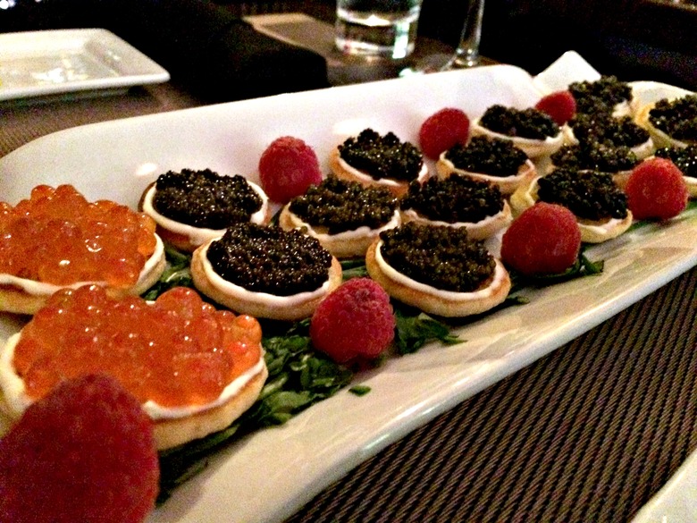 We started our caviar journey with the mild salmon red caviar. These were the biggest eggs of the night. Bright reddish-orange in color, each ball exploded with well-balanced salty and sweet flavors. It reminded me of the type of salmon roe on sushi, just a lot less fishy.